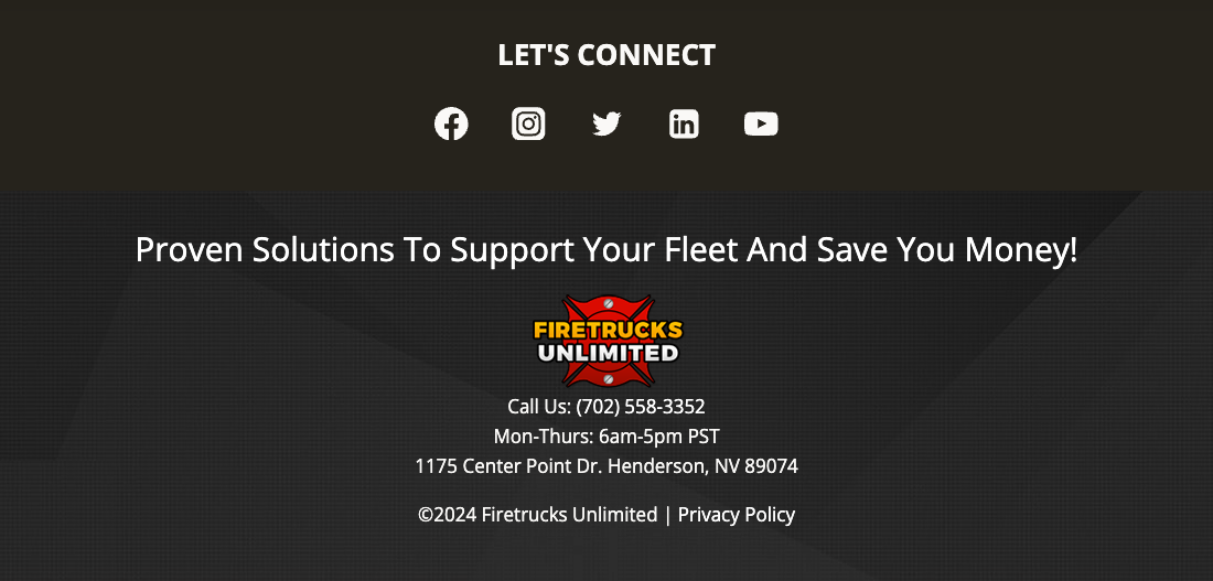 Facebook Instagram Twitter LinkedIn YouTube Firetrucks Unlimited Homepage (702) 558-3352 Privacy Policy